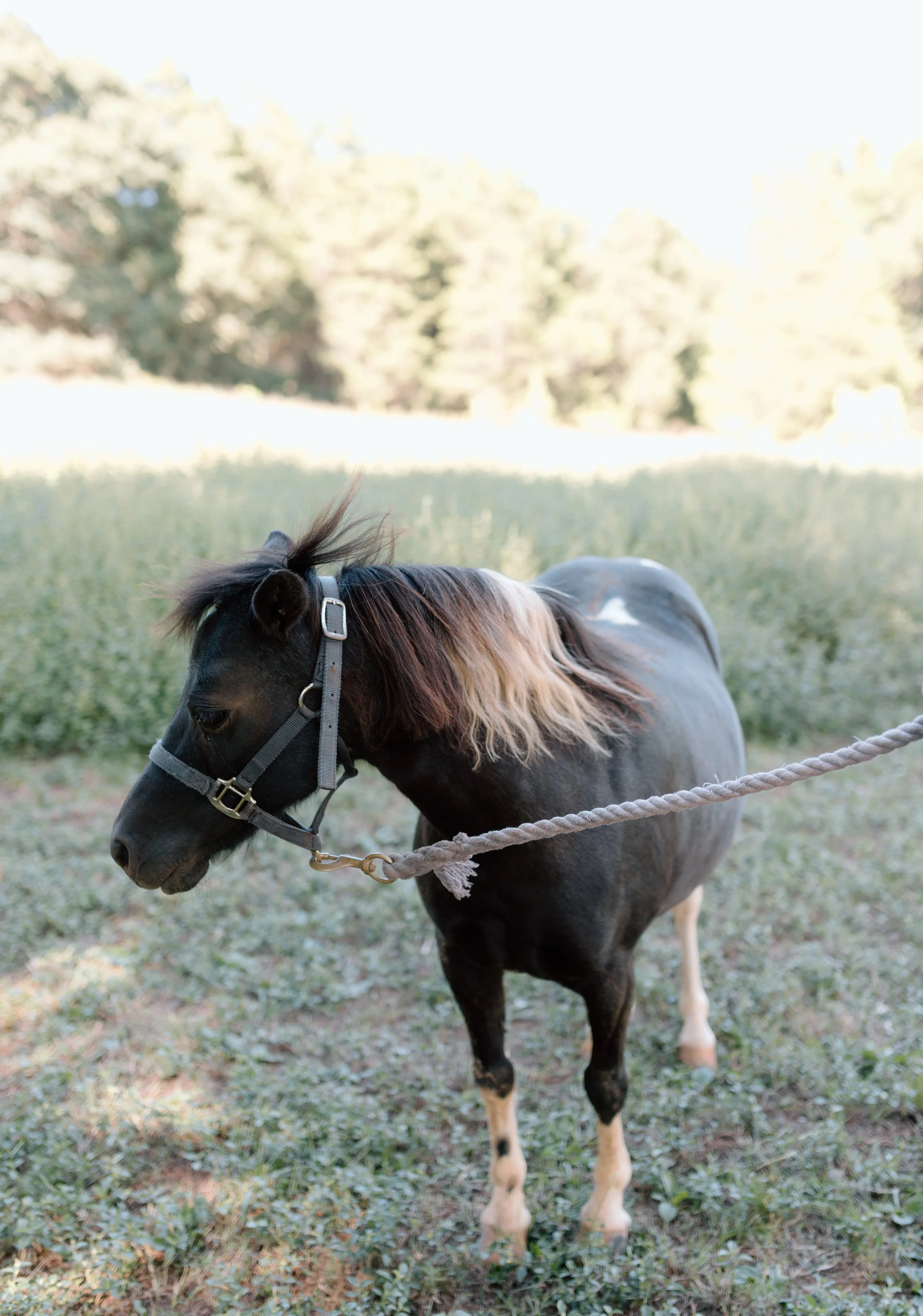 Zoey is a Mini Pony who was adopted in February 2024. She is adjusting well to her new role of therapy pony at the barn. Her playful nature makes her a great addition.
